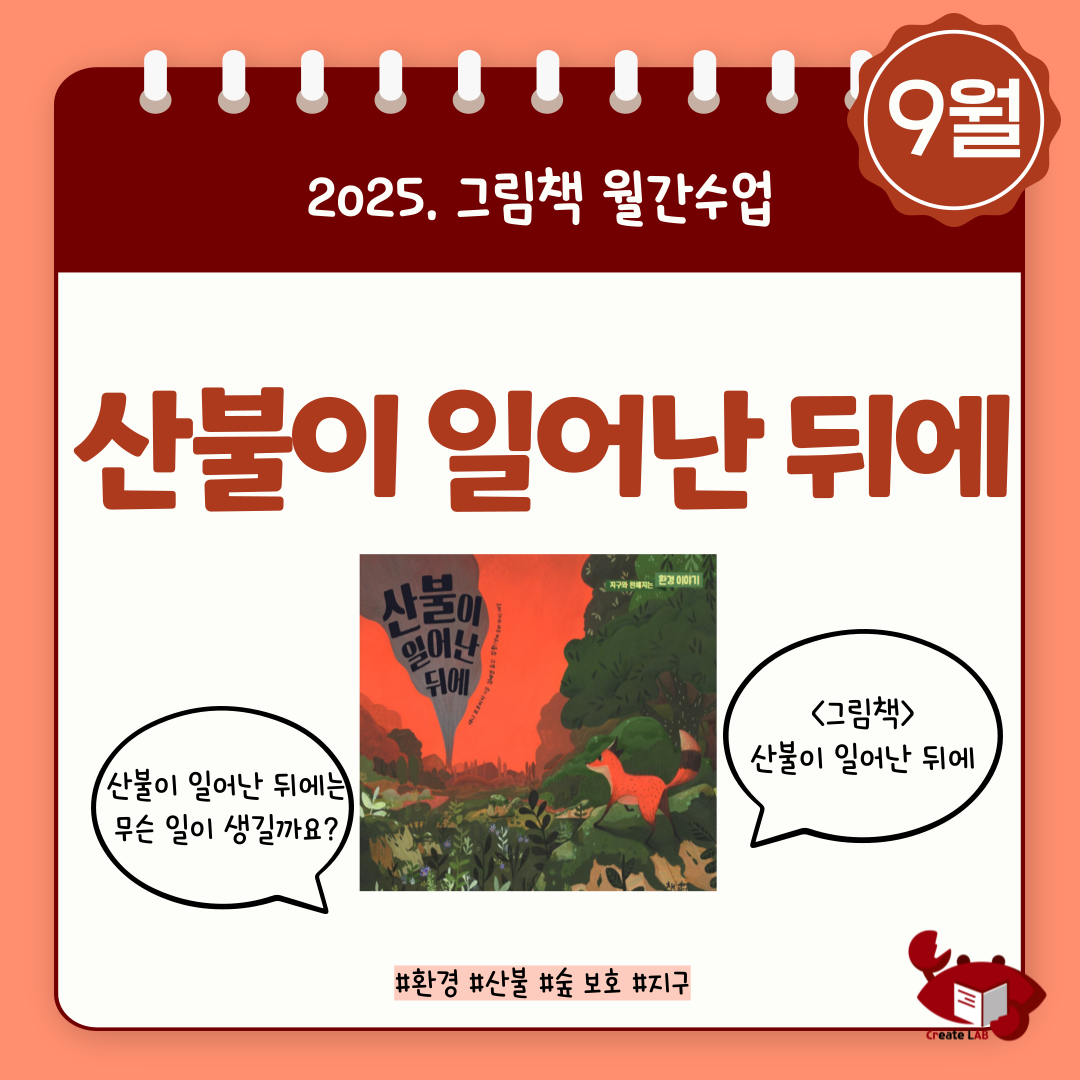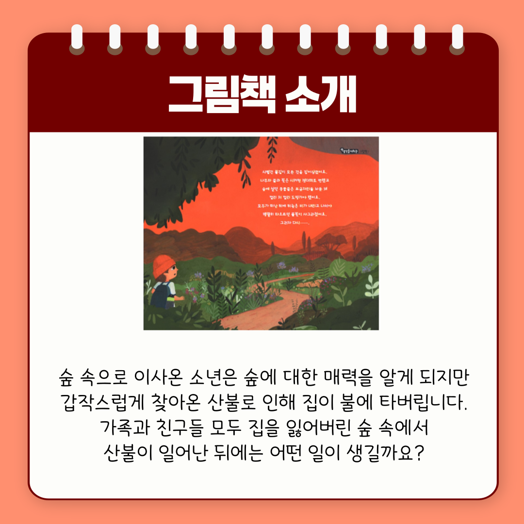 9월 월간수업 그림책은 '산불이 일어난 뒤에'입니다.
