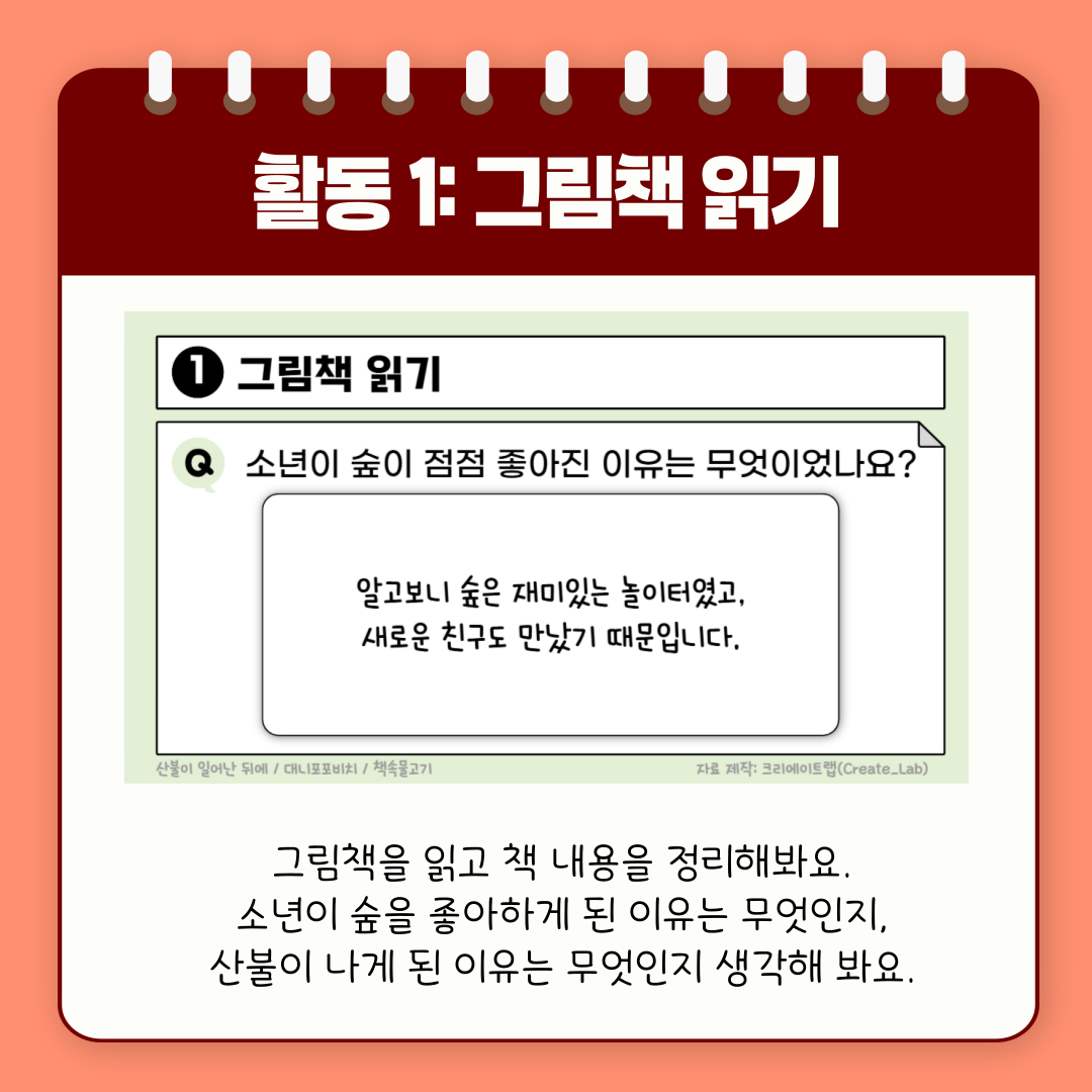 그림책을 함께 읽어보고, 책 내용을 정리해 봅니다.