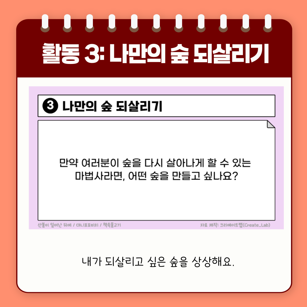 마지막으로 숲을 보호하는 마음을 담아 나만의 숲을 만들어보면 좋을 것 같습니다:)
