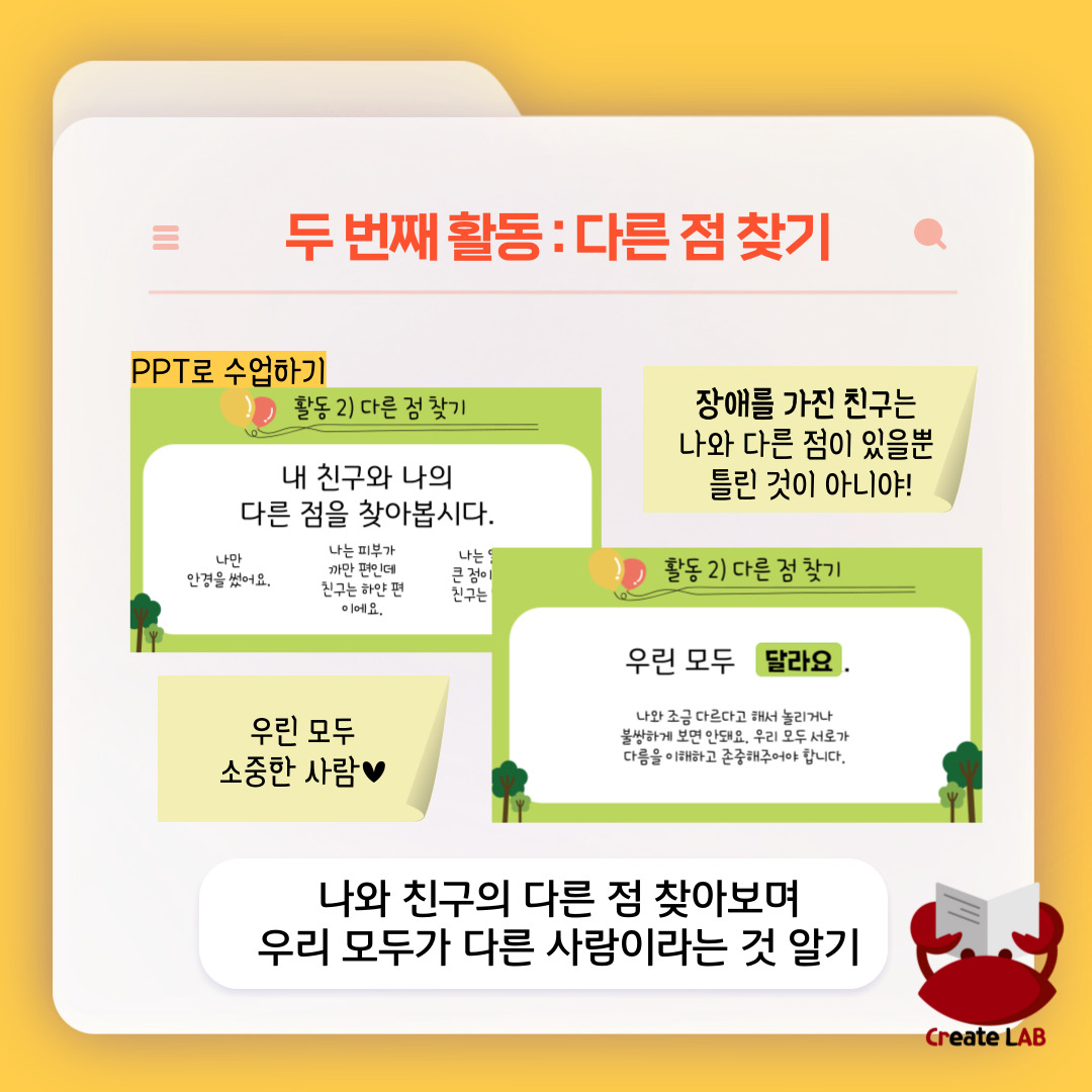 크랩이 준비한 PPT와 마음카드로 의미 있는 장애이해교육을 해 보세요!