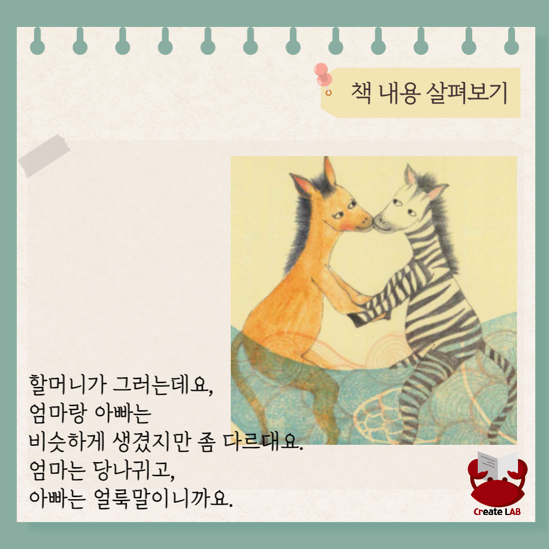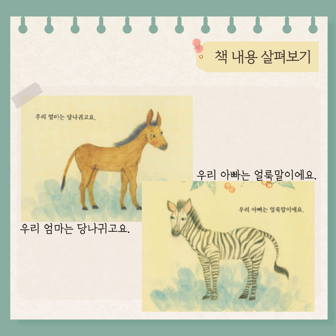 제동크는 비슷하지만 다른 당나귀 엄마와 얼룩말 아빠 사이에서 태어난 아이입니다. 처음엔 서로 다른 모습때문에 아빠와 엄마가 속상해하는 일이 많지만, 결국 서로가 진심으로 사랑하면 외모는 중요하지 않다라는 것을 깨닫고 더욱 행복한 가족이 되는 이야기입니다.
