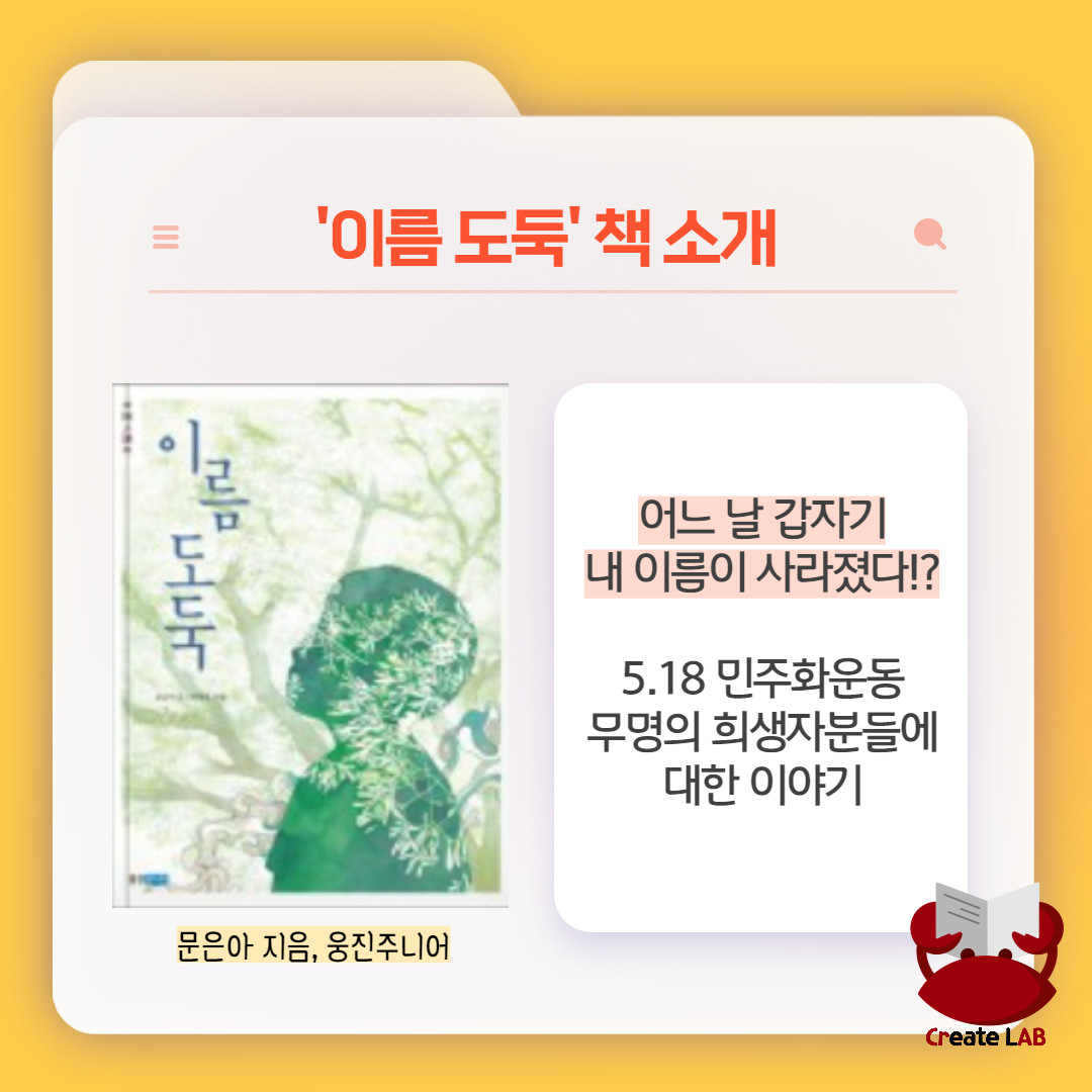 두 번째 책은 '이름 도둑' 입니다. 5월 18일, 이름도 남기지 못한 무명의 희생자분들에 대한 이야기입니다.