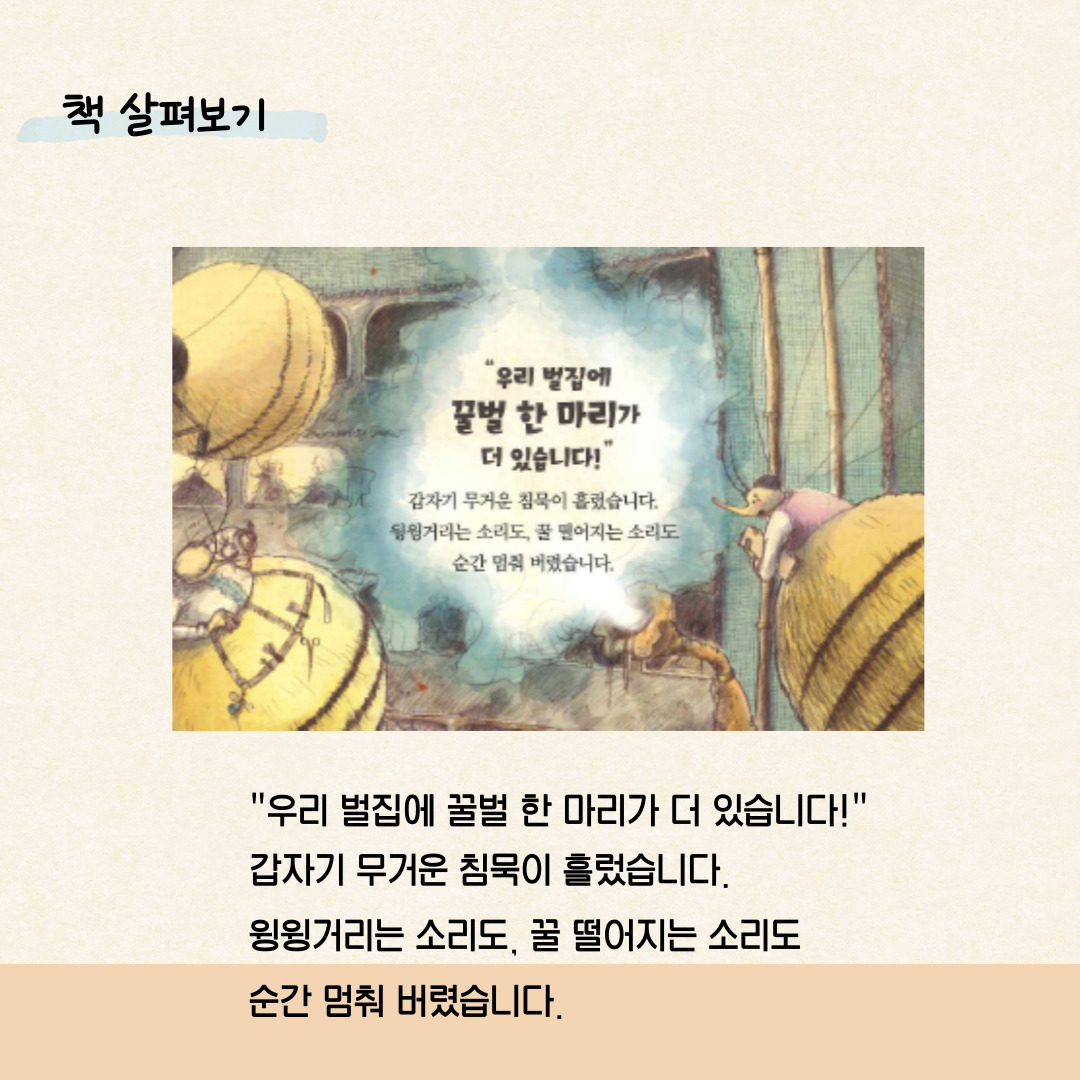 "우리 벌집에 꿀벌 한 마리가 더 있습니다." 부분까지만 읽고 아이들에게 뒷이야기를 상상할 수 있게 하면