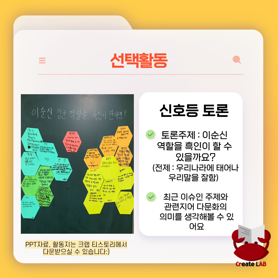 추가 활동으로 피부색과 관련된 주제로 신호등 토론을 진행할 수 있습니다.