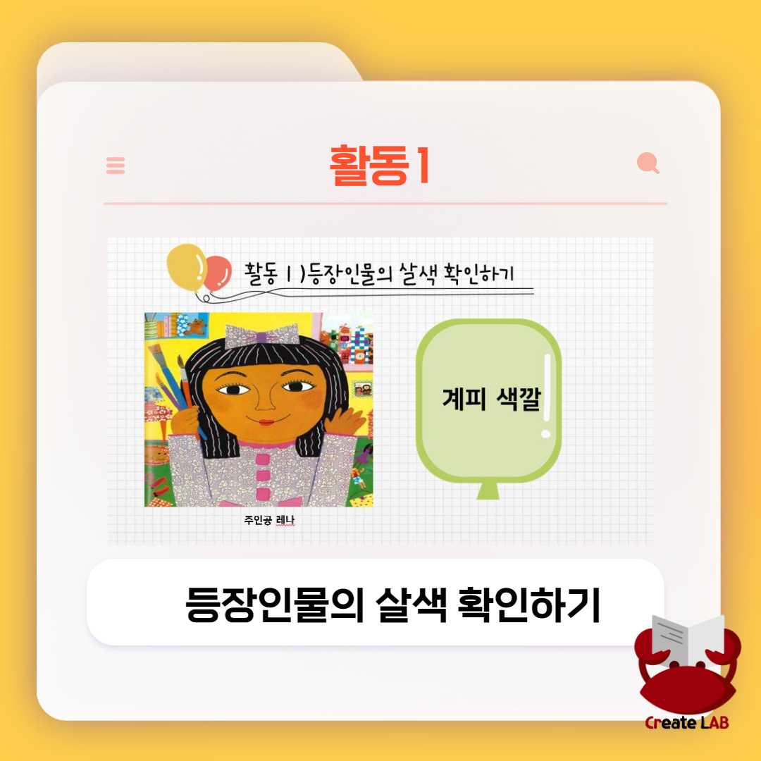 활동 1은 책을 읽고 등장인물의 살색을 확인합니다.
