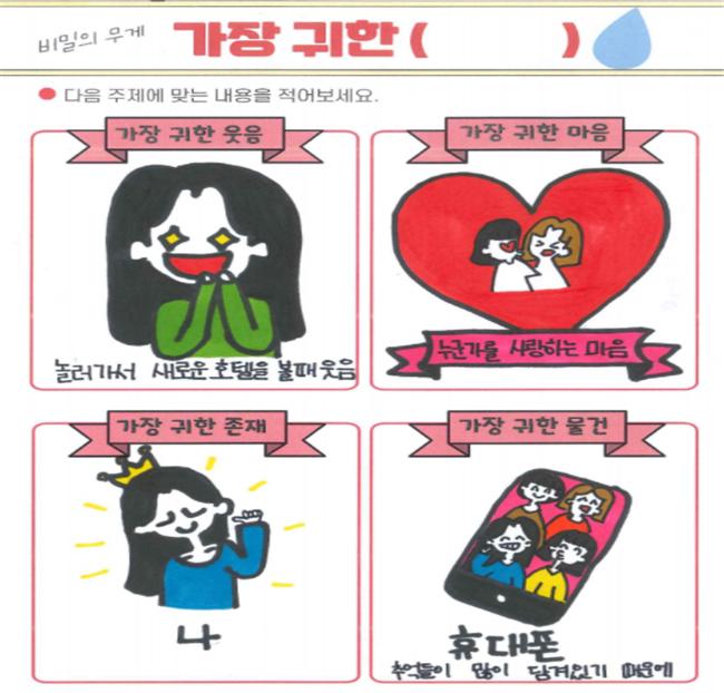 - 활동 내용: 읽은 내용 정리하기, 나에게 귀중한 것 생각해보기, 가장 귀한 ( ) 정리하기