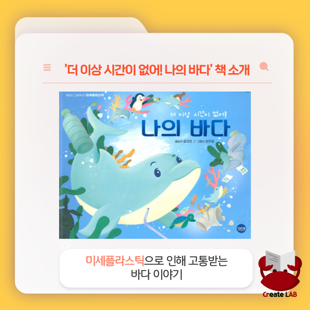 '더 이상 시간이 없어! 나의 바다' (저자 김고은)는 미세플라스틱을 비롯한 다양한 문제로 인해 고통 받는 바다 생물의 이야기를 담고 있습니다.
