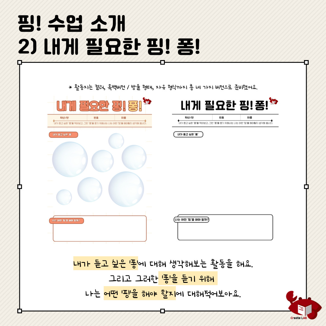 내가 어떤 '핑'을 해야할지에 대해 생각해보는 활동입니다.