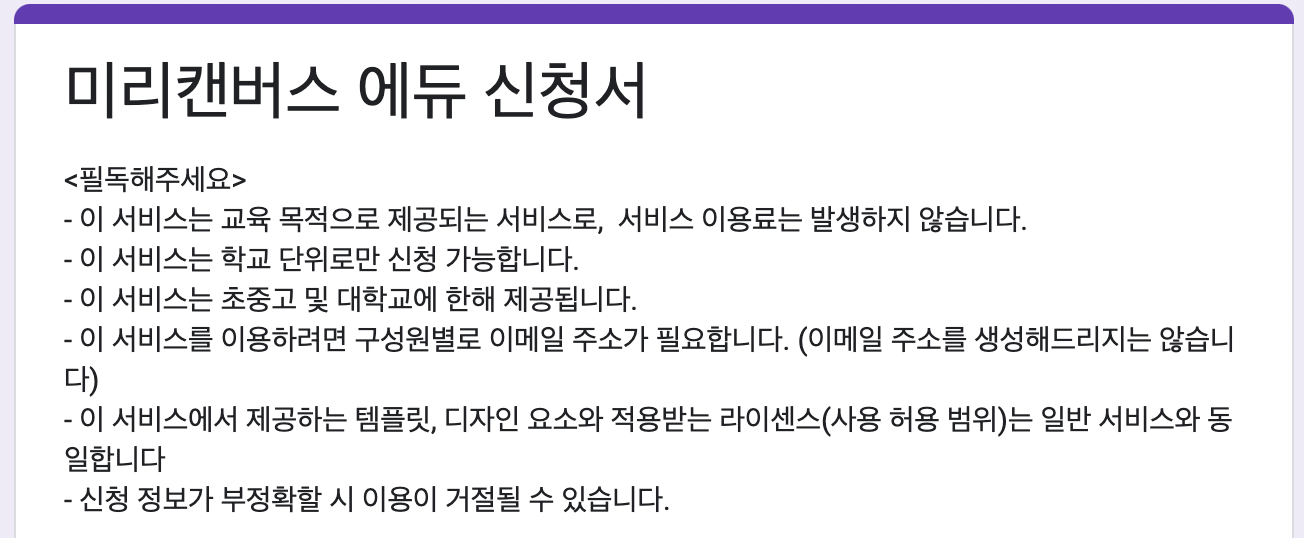 그래서 미리캔버스 EDU 버전 신청을 원하신다면