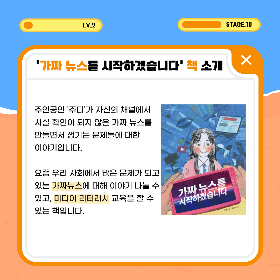 - 제시된 뉴스와 정보가 가짜인지 진짜인지 판단해보며 미디어 리터러시 역량을 기를 수 있습니다.(학습지 제공)